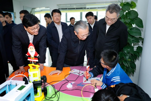 2018年11月,山東省委書記劉家義,赴中印硅谷-創(chuàng)客研學(xué)基地與參加研學(xué)活動(dòng)的孩子們進(jìn)行交流,了解活動(dòng)的開展情況。 |