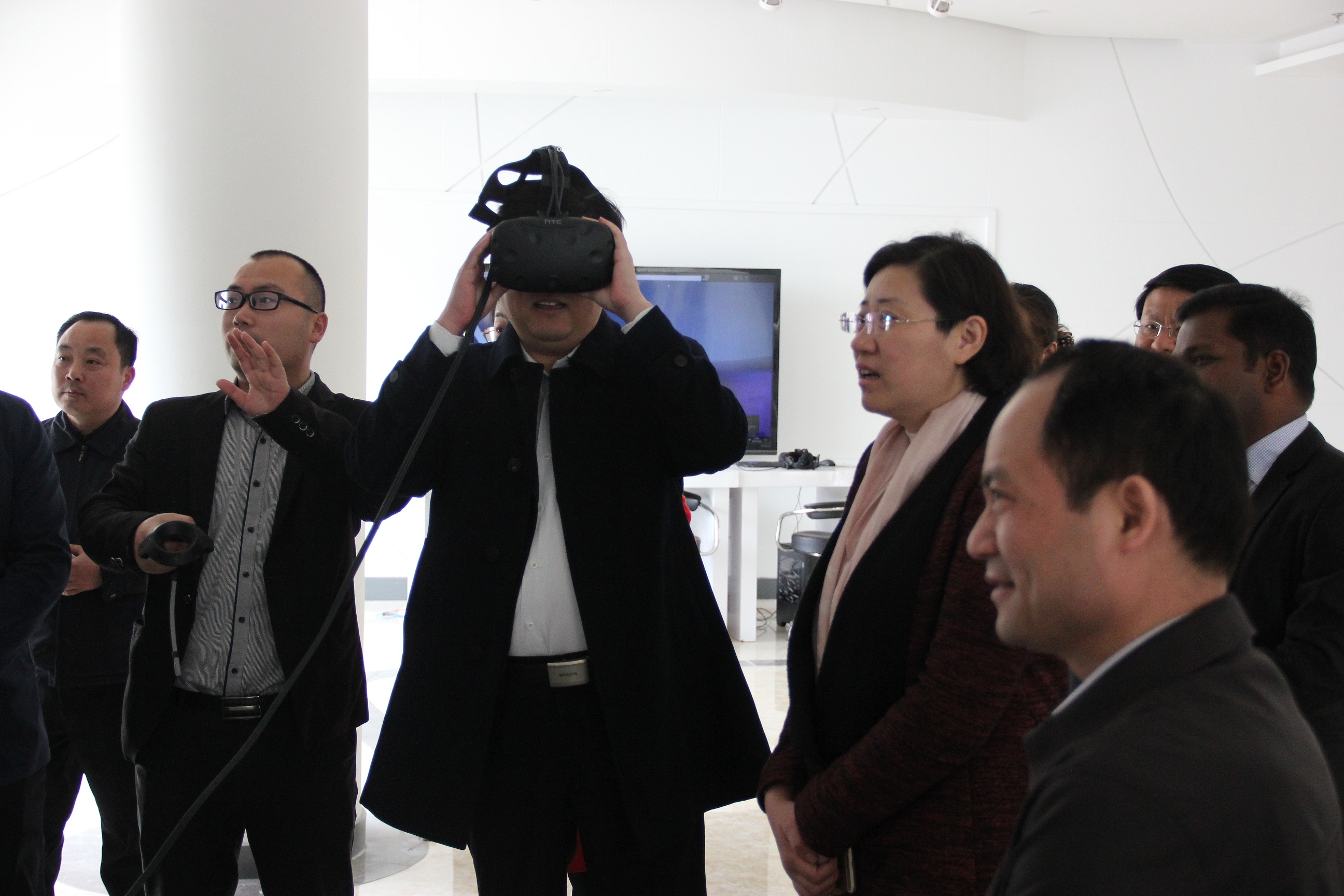 體驗(yàn)VR教室 陳一兵書記一行實(shí)地參觀了研發(fā)中心、國(guó)際技術(shù)交流中心、研發(fā)中心電教室,認(rèn)真聽取了董事長(zhǎng)王嵐保關(guān)于公司發(fā)展情況的介紹,親身體驗(yàn)了VR教室,觀看了臨沂市智慧教育云平臺(tái)的演示,對(duì)云計(jì)算、大數(shù)據(jù)、公共服務(wù)云平臺(tái)等方面取得的成績(jī)給予了肯定,對(duì)智慧教育云平臺(tái)等研發(fā)成果給予了高度認(rèn)可。 陳一兵書記指出教育信息化是時(shí)代發(fā)展的必然要求,臨沂市智慧教育云平臺(tái)以“信息化促進(jìn)教育均衡發(fā)展、創(chuàng)新教育教學(xué)模式”為切入點(diǎn),堅(jiān)持以學(xué)生為中心,以教師為主體,以提高教育教學(xué)質(zhì)量為宗旨,全面推動(dòng)了智慧教育的發(fā)展。希望國(guó)家中印科技國(guó)際創(chuàng)新園立足臨沂市大數(shù)據(jù)中心,充分發(fā)揮平臺(tái)優(yōu)勢(shì),進(jìn)一步加強(qiáng)智慧教育平臺(tái)建設(shè)。通過集聚優(yōu)質(zhì)數(shù)字教育資源,加強(qiáng)在線開放課程建設(shè),大力推進(jìn)智慧教育的建設(shè)與應(yīng)用,全面提升智慧教育的信息技術(shù)應(yīng)用能力。 |