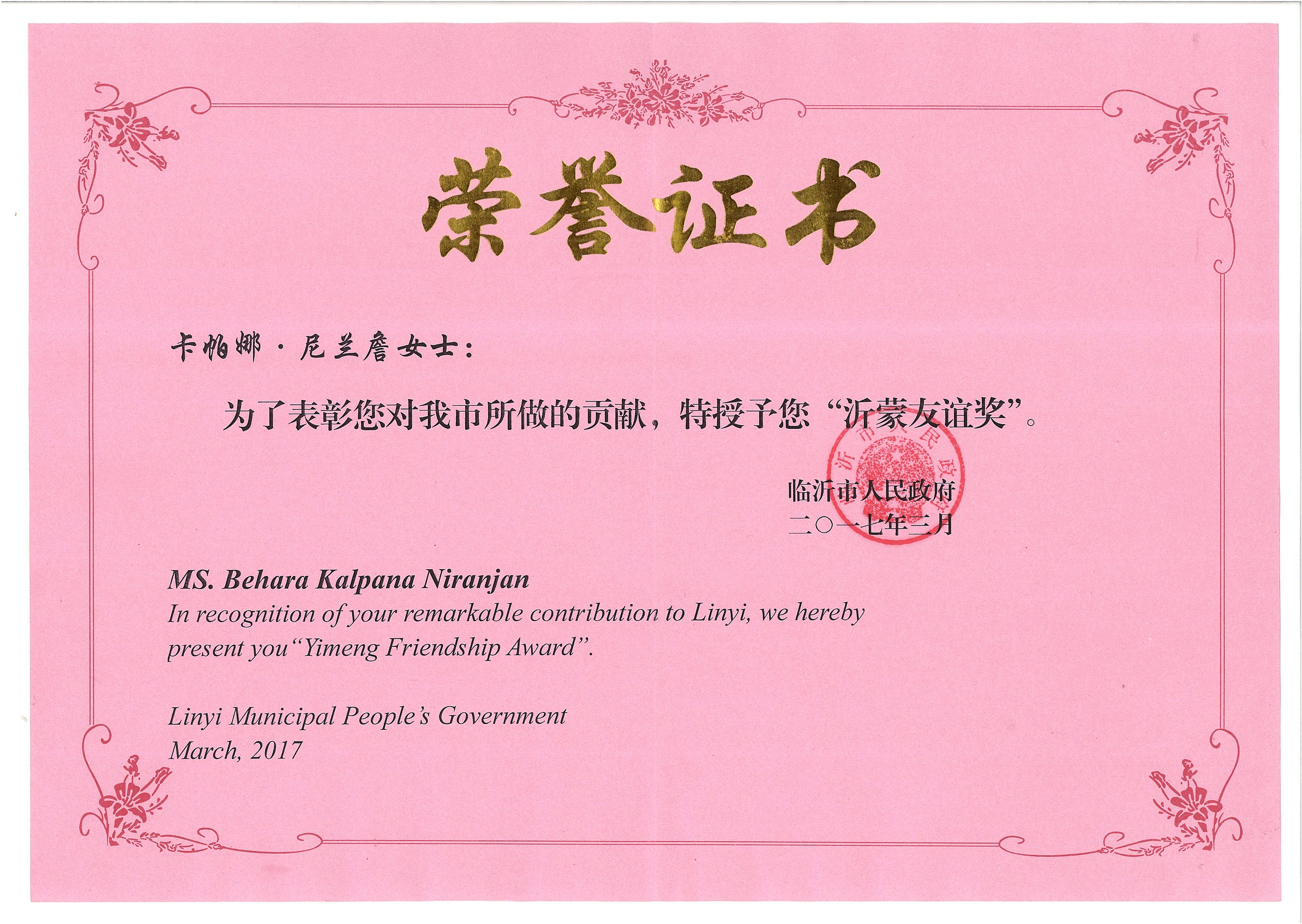 熱烈祝賀印度、俄羅斯兩位專家榮獲“沂蒙友誼獎” |