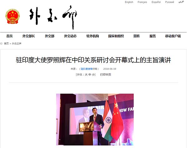 就在本月18日,中國(guó)駐印度使館在新德里與印度中國(guó)研究所、印度工商聯(lián)合會(huì)、印度外事記者協(xié)會(huì)、南亞外國(guó)記者俱樂部合作舉辦了題為“后武漢時(shí)期:中印關(guān)系愿景與速度”的研討會(huì),探討中印關(guān)系未來發(fā)展前景。中國(guó)駐印度大使羅照輝、印度國(guó)家轉(zhuǎn)型委員會(huì)秘書長(zhǎng)康德出席開幕式并發(fā)表主旨演講(點(diǎn)擊查看演講原文)。