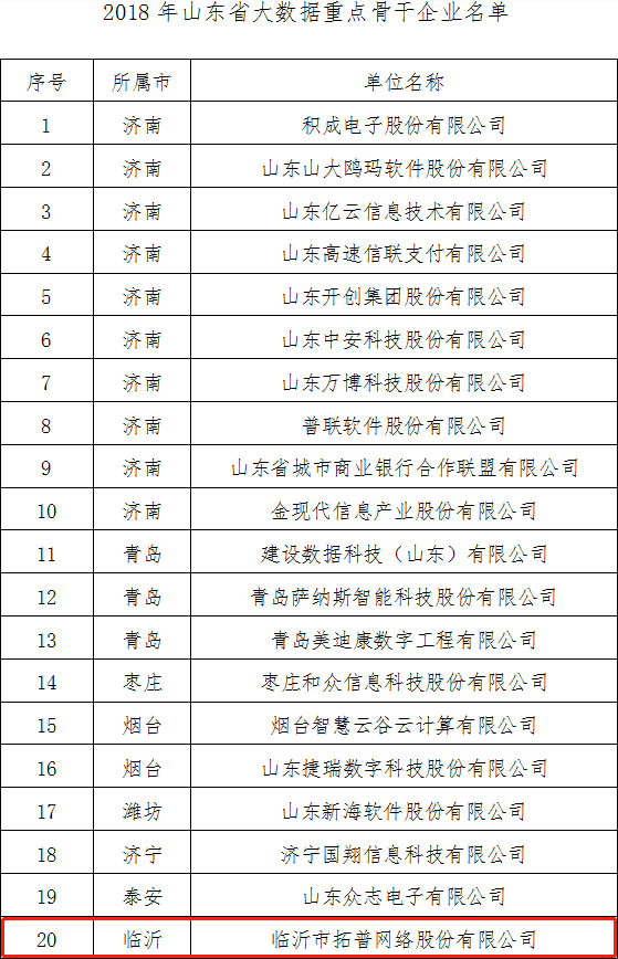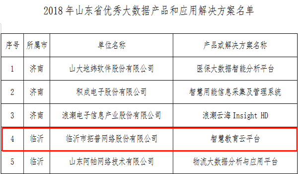 拓普公司入選山東省大數(shù)據(jù)產(chǎn)業(yè)集聚區(qū)、重點(diǎn)骨干企業(yè) |
