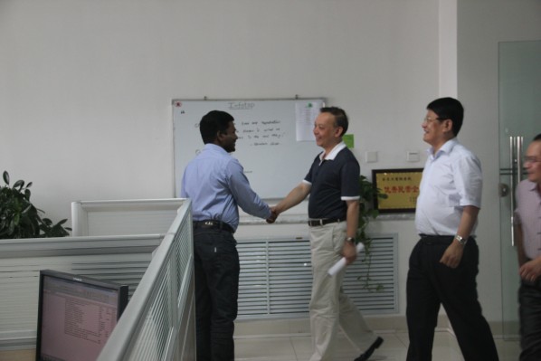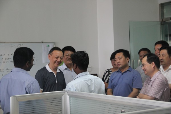 2012年7月15日下午,國家外專局經(jīng)技司副司長易凡平、國家外專局經(jīng)技司管理處副調(diào)研員陳揚(yáng)、山東省外國專家局局長劉杰、山東省外國專家局綜合處副處長董續(xù)光領(lǐng)導(dǎo)一行在臨沂市人社局副局長、黨組副書記楊景林、臨沂市人社局副局長、外國專家局局長密守勇、臨沂市外國專家局副局長闞吉廷、呂振云、臨沂市外專局引智綜合科科長林錦云、開發(fā)區(qū)人力資源服務(wù)局局長劉發(fā)舜等領(lǐng)導(dǎo)的陪同下來我公司視察指導(dǎo)工作。 國家外專局領(lǐng)導(dǎo)一行在公司會(huì)議室聽取了張金剛經(jīng)理關(guān)于臨沂市拓普網(wǎng)絡(luò)有限公司關(guān)于引智工作情況的匯報(bào)。張經(jīng)理分別從公司簡介、人才引進(jìn)、留住人才、引智項(xiàng)目、今后打算等五大方面向各位領(lǐng)導(dǎo)進(jìn)行了一一匯報(bào)。公司王總則向易司長等各位領(lǐng)導(dǎo)詳細(xì)講解了外籍人才引進(jìn)后的工作、生活等各個(gè)方面的情況,表示,無論從工作環(huán)境上、生活環(huán)境上、人文關(guān)懷上,公司都給予了全方位、具體化的安排和規(guī)劃,讓外籍專家排除后顧之憂,全身心的投入到研發(fā)工作中去。 易司長在觀看完公司引智工作匯報(bào)后,對(duì)我公司的引智工作給予了高度認(rèn)可和評(píng)價(jià),對(duì)我公司能一次性引進(jìn)如此大的外籍研發(fā)團(tuán)隊(duì)給予了極大的鼓勵(lì)和贊揚(yáng)。并指出,通過外籍專家的引進(jìn),利用外國先進(jìn)的研發(fā)理念和技術(shù),通過成果轉(zhuǎn)化來提升我國軟件行業(yè)的研發(fā)水平。 易司長鼓勵(lì)我公司加強(qiáng)外籍專家的技術(shù)成果轉(zhuǎn)化,積極申報(bào)國家級(jí)、省級(jí)高端外國專家項(xiàng)目,并表示,國家外專局在高端專家項(xiàng)目的申報(bào)上將給予大力支持和幫助。 會(huì)后,領(lǐng)導(dǎo)一行參觀了外籍專家的辦公場所,并與外籍專家進(jìn)行了親切的交談。領(lǐng)導(dǎo)仔細(xì)詢問了各位專家的在華工作、生活等各方面情況,外籍專家都一一作了回答。外籍專家對(duì)領(lǐng)導(dǎo)的慰問表示感謝,并表示將努力工作,通過自身的不斷創(chuàng)新與現(xiàn)有技術(shù)相結(jié)合創(chuàng)造出更多、更具有先進(jìn)理念的軟、硬件產(chǎn)品。