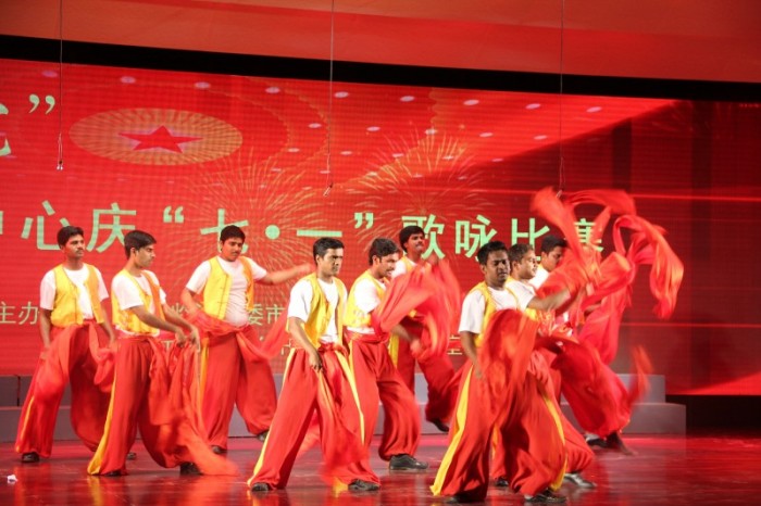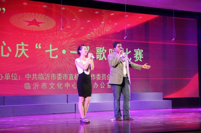 六月二十九日下午,我公司參加中共臨沂市委市直機(jī)關(guān)工作委員會(huì)、臨沂市文化中心管理辦公室舉辦的臨沂市“頌歌獻(xiàn)給黨”慶祝中國(guó)共產(chǎn)黨建黨九十一周年歌詠比賽活動(dòng),演出的《在燦爛陽(yáng)光下》、《陽(yáng)光路上》在眾多專業(yè)團(tuán)隊(duì)中獲得總分第四名的好成績(jī)。 這次活動(dòng)是我公司自成立以來(lái)第一次參加市直機(jī)關(guān)組織的歌詠比賽活動(dòng),公司領(lǐng)導(dǎo)對(duì)此非常重視,安排由人力資源部牽頭,各部門配合,全體演職人員參加的排練活動(dòng),在排練時(shí)間緊、任務(wù)重的情況下,全體演職人員都能抽出時(shí)間積極參加演練。參加演練和組織的54名員工,都能以公司大局為重,以宣傳公司為己任,為公司做大、做強(qiáng)奉獻(xiàn)自己的力量,正確處理好參加練唱與部門主管的關(guān)系、歌曲練唱與工作的關(guān)系、參加活動(dòng)與家庭事務(wù)的關(guān)系,以積極、認(rèn)真的態(tài)度和飽滿的熱情投入到歌曲排練中。印度籍員工能夠積極參加歌舞排練,以印度地方舞蹈為特色,突出以學(xué)習(xí)中國(guó)文化為背景,完成了《東方紅》歌舞的排練,取得了較好的演出效果,印度籍專家的演出成為歌詠比賽活動(dòng)的一大亮點(diǎn),獲得觀眾滿堂彩。