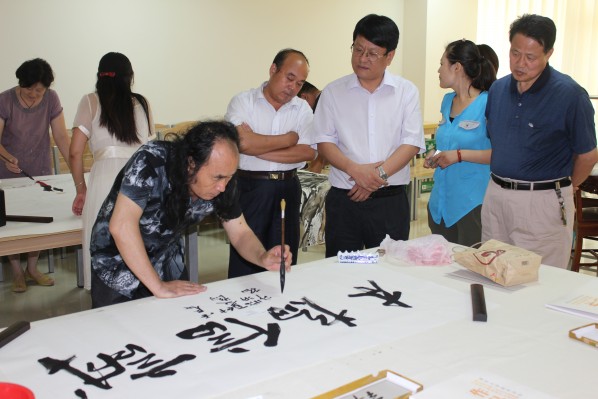 | 中國當(dāng)代花鳥畫大師顏泉一行到拓普網(wǎng)絡(luò)公司揮毫潑墨 |