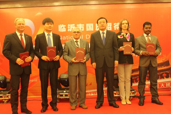 9月28日,臨沂市國慶招待會暨臨沂國際友人俱樂部成立大會在陶然居隆重舉行,市委書記、市人大常委會主任張少軍致辭,市委副書記、市長張務鋒為獲得“臨沂市榮譽市民”稱號的外國友人頒發(fā)證書,張少軍和張務鋒共同為臨沂國際友人俱樂部揭牌。林國華、李沂明、徐福田、孫豐剛、邊峰、王曉嫚、譚慶功等領導同志出席。 拓普網絡公司印度籍專家Babu先生榮膺“臨沂市榮譽市民”,這體現(xiàn)了拓普公司崇尚知識、尊重人才的做法,贏得了市委、市政府的肯定。 拓普網絡公司的印度籍專家以一場原汁原味的印巴風情舞蹈為本次宴會拉開帷幕,贏得陣陣喝彩,各國友人也紛紛以自己的方式為本次活動獻上精彩演出。 臨沂市拓普網絡有限公司公司歷來注重人才引進,大力實施“人才興企”戰(zhàn)略,去年至今,陸續(xù)從印度引入近40位高端人才,這在全省軟件行業(yè)當中都是絕無僅有的,彰顯了公司敢為人先的魄力,以及走向國際化的決心。印度籍專家團隊的到來,不僅增強了公司內部的研發(fā)實力,也提升了企業(yè)的外在形象。