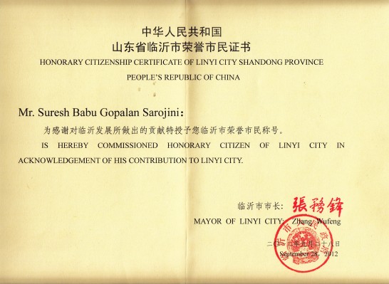 | 拓普網絡公司印度籍專家BABU先生榮膺“臨沂市榮譽市民” |