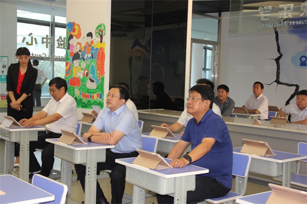 2017年9月28日,副市長常紅軍率調(diào)研組一行到園區(qū)調(diào)研智慧教育云服務(wù)項(xiàng)目。市教育局局長尹傳斌,開發(fā)區(qū)黨工委副書記、管委會(huì)副主任王文元,開發(fā)區(qū)黨工委委員、管委會(huì)副主任劉發(fā)舜,公司董事長王嵐保陪同。 調(diào)研組一行先后實(shí)地查看了高科技互動(dòng)體驗(yàn)展廳、大數(shù)據(jù)中心、拓普智慧課堂、信息化綜合培訓(xùn)中心、臨沂智慧教育創(chuàng)客活動(dòng)中心、專家公寓客房,在大愛社區(qū)服務(wù)中心,觀看了臨沂市智慧教育云平臺(tái)功能應(yīng)用展示,認(rèn)真聽取了關(guān)于臨沂市智慧教育云平臺(tái)建設(shè)運(yùn)營情況的詳細(xì)匯報(bào),并在四樓會(huì)議室召開了座談會(huì)。