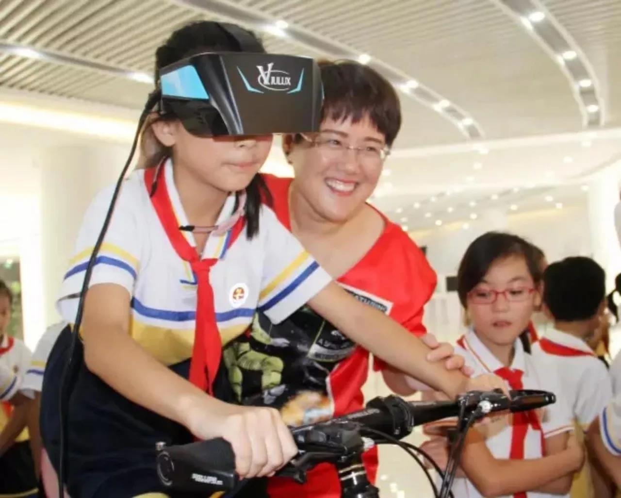 ▲經(jīng)開區(qū)一小學(xué)生體驗(yàn) VR 自行車