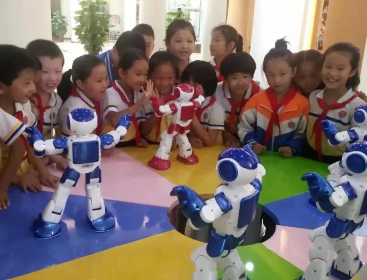 ▲經(jīng)開區(qū)一小學(xué)生觀看機(jī)器人舞蹈