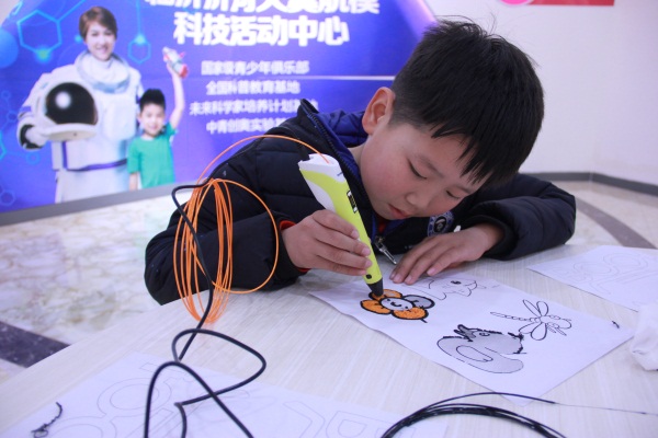 在3D打印智慧教育創(chuàng)客課堂,學(xué)生和家長(zhǎng)們被一支神奇的3D打印筆吸引,它堪比馬良手中的神筆,在專業(yè)3D創(chuàng)客老師的講解下,它不僅能“紙上生花”,還能讓埃菲爾鐵塔模型躍然眼前,孩子們?cè)诳破諏W(xué)習(xí)中忙得不亦樂乎。在VR世界,孩子們帶著VR眼鏡,在虛擬的世界里盡情享受高科技帶來(lái)的賽車駕駛、單車、民航模擬飛行體驗(yàn)……在臨沂智慧教育創(chuàng)客活動(dòng)中心將現(xiàn)代信息技術(shù)與教育實(shí)踐融合的課堂里,不僅能讓學(xué)生享受到科技生活帶來(lái)的樂趣,更能讓學(xué)生在動(dòng)手動(dòng)腦中獲得多面發(fā)展。