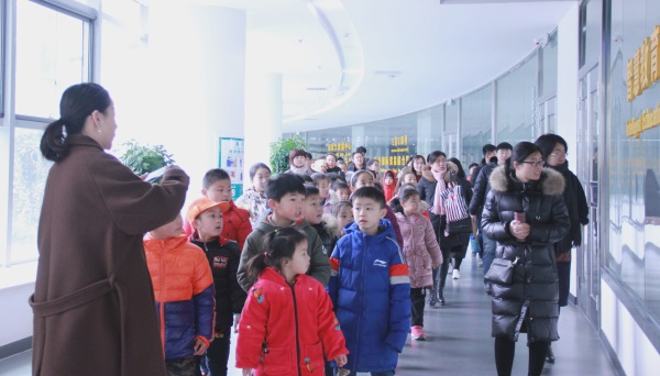 工作人員講解公司概況 在公司大樓的一樓展廳,講解員認(rèn)真講解公司概況、發(fā)展歷程,孩子們更是聽(tīng)得全神貫注?!拔业陌职衷谘邪l(fā)部”“我的媽媽在教育云營(yíng)銷部”,聽(tīng)完講解后,孩子們對(duì)爸爸媽媽們的工作有了進(jìn)一步了解。