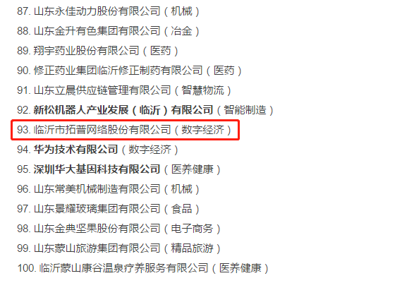 我市新舊動(dòng)能轉(zhuǎn)換重點(diǎn)建設(shè)項(xiàng)目和高成長(zhǎng)型企業(yè)名單發(fā)布,臨沂市拓普網(wǎng)絡(luò)股份有限公司榜上有名! |