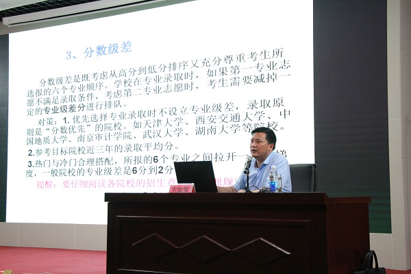為了協(xié)助臨沂市內(nèi)各學(xué)校做好高考志愿填報(bào)指導(dǎo)工作,切實(shí)保障廣大考生志愿填報(bào)工作的順利進(jìn)行,解決廣大家長(zhǎng)最關(guān)心的問(wèn)題,托起莘莘學(xué)子的名牌大學(xué)夢(mèng)。6月12日-13日,“2018年臨沂市高考志愿填報(bào)和博士公益講座”在國(guó)家中印科技國(guó)際創(chuàng)新園報(bào)告廳成功召開。![]() ![]() 來(lái)自全市各高中的百余名高三班主任老師參與了第一天的講座,卞如軍老師為到場(chǎng)老師們解讀了2018年山東省高考志愿填報(bào)政策新變化及常見(jiàn)誤區(qū)。卞如軍由發(fā)生在身邊的幾起填報(bào)事例說(shuō)起,生動(dòng)形象的為老師們闡述了正確合理填報(bào)高考志愿的重要性。隨后,卞老師還將他精心總結(jié)的填報(bào)口訣教授給了到場(chǎng)老師,并與老師們就新高考改革和志愿填報(bào)等方面的常見(jiàn)問(wèn)題展開了深入的交流分析。在第二天的講座上,卞如軍老師與到場(chǎng)的家長(zhǎng)和高三考生們分享了高考志愿填報(bào)的基本流程和常見(jiàn)風(fēng)險(xiǎn),并就如何準(zhǔn)確定位選擇專業(yè)和大學(xué)等方面的問(wèn)題對(duì)大家提出了針對(duì)性建議。