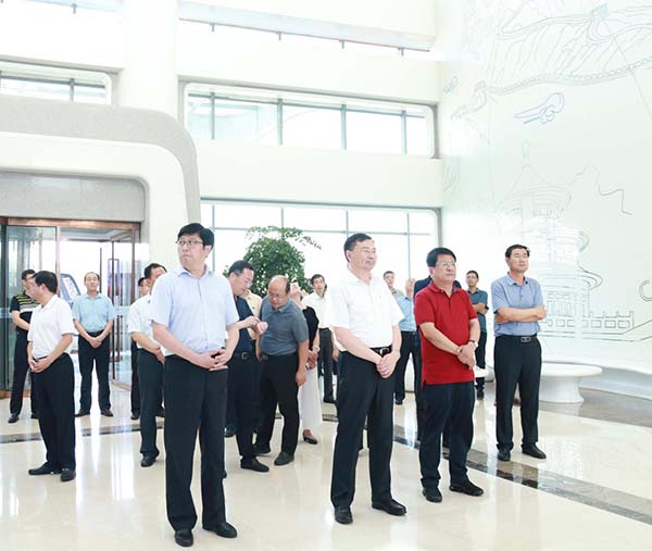 2018年6月28日,日照經(jīng)濟(jì)技術(shù)開發(fā)區(qū)工委書記杜江濤一行到國家中印科技國際創(chuàng)新園參觀考察,市政府黨組成員、開發(fā)區(qū)黨工委書記、管委會(huì)主任陳一兵陪同。