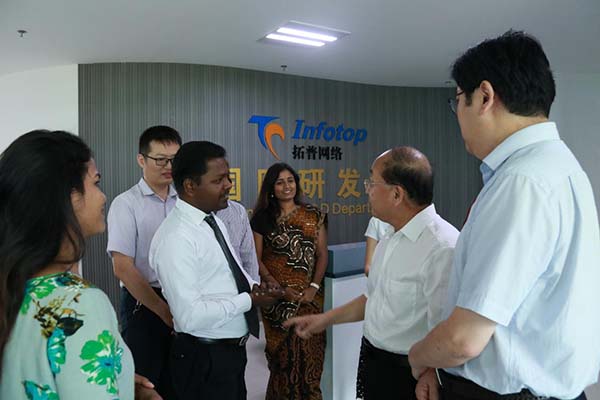 李喆書記一行聽取產(chǎn)品介紹 在拓普公司董事長王嵐保的陪同下,李喆一行先后參觀了園區(qū)研發(fā)中心、臨沂大數(shù)據(jù)中心、山東智慧教育信息化應用能力培訓基地、山東智慧教育創(chuàng)客活動中心、國際研發(fā)中心等地。在山東智慧教育信息化應用能力培訓基地,李喆書記一行聽取了董事長王嵐保關于“拓普智慧教育云平臺”、“和博士學業(yè)測評系統(tǒng)”兩款公司產(chǎn)品的詳細匯報。