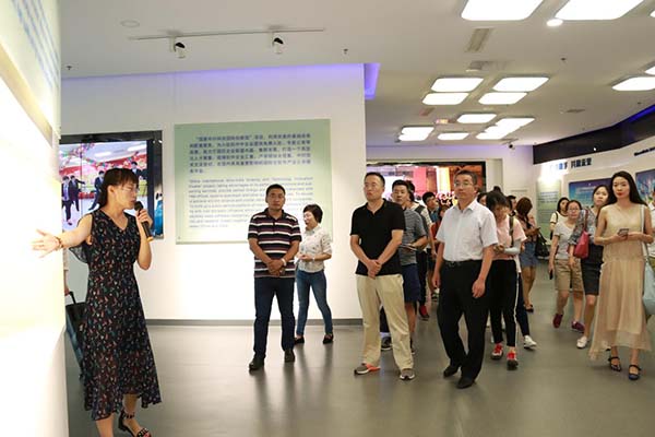 (記者團(tuán)參觀園區(qū)展廳) 據(jù)了解,此次活動(dòng)共有來自人民日?qǐng)?bào)、新華社、求是雜志社、光明日?qǐng)?bào)社、經(jīng)濟(jì)日?qǐng)?bào)社、中央人民廣播電臺(tái)、中央電視臺(tái)、中國(guó)國(guó)際廣播電臺(tái)、中國(guó)日?qǐng)?bào)社、工人日?qǐng)?bào)社等36家媒體的42名編輯參加。