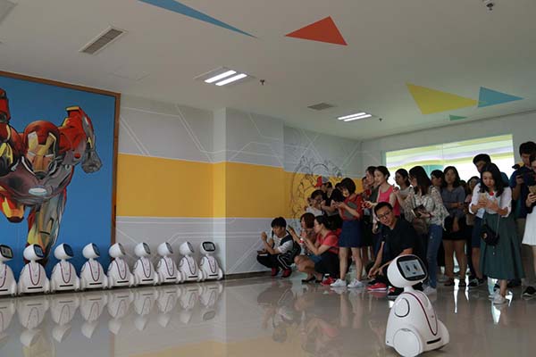 (記者團(tuán)參觀高科技互動(dòng)體驗(yàn)區(qū)) 記者團(tuán)一行跟隨園區(qū)工作人員先后參觀了一樓展廳內(nèi)的研發(fā)中心、臨沂市大數(shù)據(jù)中心、創(chuàng)客教育實(shí)踐基地、山東省智慧教育創(chuàng)客活動(dòng)中心高科技互動(dòng)體驗(yàn)區(qū)和綜合實(shí)踐區(qū)等地,工作人員向記者們?cè)敿?xì)介紹了拓普網(wǎng)絡(luò)股份有限公司發(fā)展現(xiàn)狀、所獲榮譽(yù)、園區(qū)入駐企業(yè)、智慧教育云平臺(tái)建設(shè)運(yùn)營(yíng)等基本情況,并向記者們描繪了園區(qū)關(guān)于未來對(duì)臨沂智慧城市的構(gòu)想。