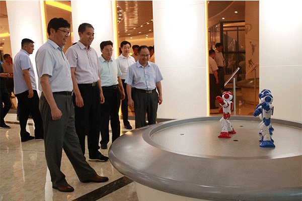 在創(chuàng)客活動中心,趙立新書記一行饒有興致的參觀了綜合實(shí)踐區(qū)的28間創(chuàng)客工坊,通過實(shí)際觀摩3D打印機(jī)操作示范、與智能機(jī)器人互動等方式感受創(chuàng)客教育的內(nèi)涵所在,對公司高度重視創(chuàng)客教育建設(shè)的做法給予高度認(rèn)可。在高科技體驗(yàn)區(qū),趙立新書記一行觀賞了機(jī)器魚、跳舞機(jī)器人等人工智能機(jī)器人產(chǎn)品,并親自體驗(yàn)VR海底世界、VR自行車、體感游戲等多項(xiàng)先進(jìn)體驗(yàn)互動設(shè)備,感受尖端科研產(chǎn)品給人們的工作生活帶來的改變。