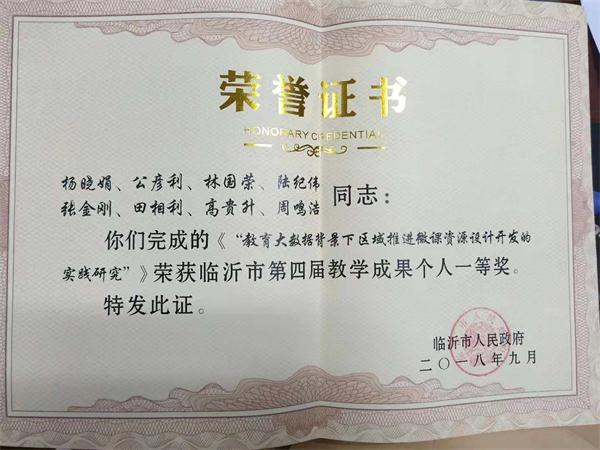 拓普公司教學(xué)成果項(xiàng)目小組榮獲“第四屆臨沂市市級(jí)教學(xué)成果獎(jiǎng)” |