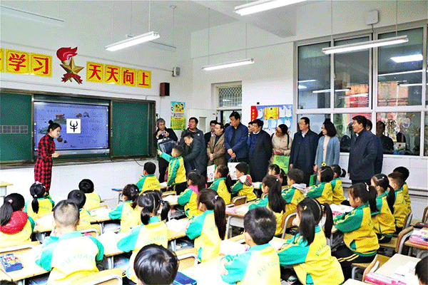 活動(dòng)共分為基礎(chǔ)教育信息化應(yīng)用現(xiàn)場觀摩及匯報(bào)交流兩種形式。在上午的現(xiàn)場觀摩活動(dòng)中,在市教育局局長尹傳斌的陪同下,省教育廳一級巡視員張志勇等人先后到訪臨沂市樸園小學(xué)和臨沂市外國語學(xué)院視察我市基礎(chǔ)教育信息化應(yīng)用情況。在臨沂市樸園小學(xué),張志勇同志一行來到一年級與部分老師交流,并進(jìn)入課堂聽課,深入了解教師在備課、上課中對智慧教育云平臺(tái)的應(yīng)用情況?,F(xiàn)場人員還觀摩了基于智慧教育云平臺(tái)的學(xué)生體質(zhì)健康監(jiān)測系統(tǒng)的應(yīng)用展示以及各縣區(qū)基礎(chǔ)教育信息化應(yīng)用成果的集中展示,來自全省十七地市的教研骨干們紛紛對我市教育系統(tǒng)以拓普公司智慧教育產(chǎn)品“拓普智慧教育云平臺(tái)”為核心開展的基礎(chǔ)教育信息化應(yīng)用建設(shè)所取得的成就贊不絕口。