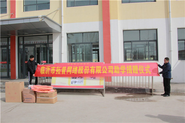 2019年3月21日,臨沂市拓普網(wǎng)絡(luò)股份有限公司與民營企業(yè)高質(zhì)量發(fā)展服務(wù)隊臨沂二隊赴沂南縣銅井鎮(zhèn)金橋聯(lián)小舉行“奉獻(xiàn)愛心 捐贈助學(xué)”活動,服務(wù)隊成員王世臣、李建平以及臨沂市教育局電教館館長徐萬東參加活動。本次活動中,拓普公司為金橋聯(lián)小捐贈了足球、籃球、羽毛球拍等數(shù)百套體育用品。
