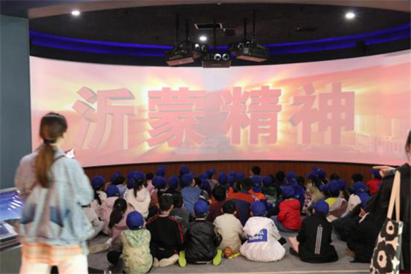 剛剛抵達基地,同學們便在工作人員的帶領下分成一支支參觀隊伍,有序參觀了AAA級旅游景區(qū),并在一個個結合中印特色的建筑、雕塑面前合影,駐足欣賞,新建成的沂蒙紅色精神展廳更是吸引大家耐心聽取講解,觀看廳內弧幕電影。