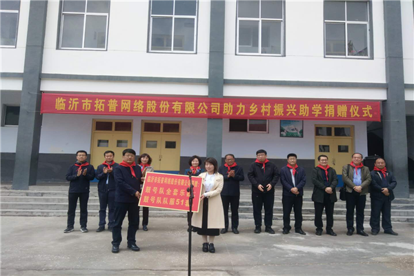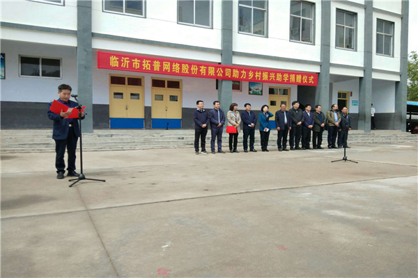 4月23日,臨沂市拓普網(wǎng)絡(luò)股份有限公司助力鄉(xiāng)村振興助學(xué)捐贈(zèng)儀式在岱崮鎮(zhèn)中心學(xué)校隆重舉行。