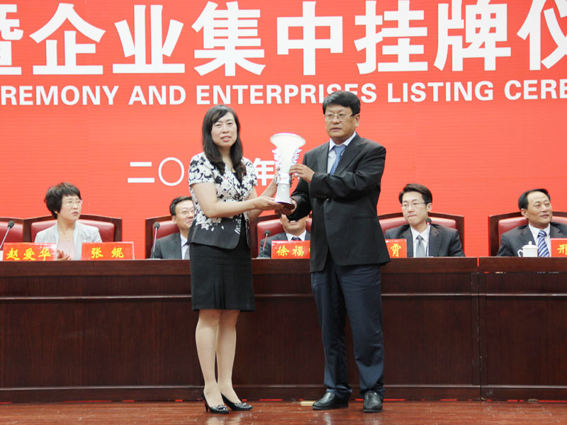 ![]() 王總作為掛牌企業(yè)代表發(fā)言 ![]() 王總向齊魯股交中心贈送紀(jì)念品 ![]() 領(lǐng)導(dǎo)為公司掛牌鳴鑼開盤