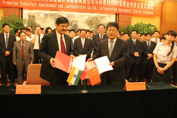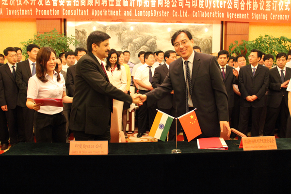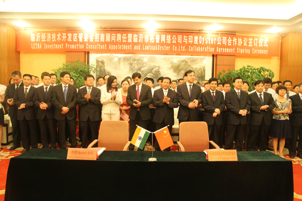 2013年7月20日,“臨沂經(jīng)濟技術(shù)開發(fā)區(qū)管委會招商顧問聘任暨臨沂市拓普網(wǎng)絡公司與印度Oyster公司合作協(xié)議簽訂儀式”在開發(fā)區(qū)會議室隆重舉行。在儀式上,市人大常委會副主任、開發(fā)區(qū)黨工委書記徐福田為Oyster公司總經(jīng)理Anil Nagpal先生頒發(fā)招商顧問聘書,黨工委副書記張雷與Anil Nagpal簽訂委托招商協(xié)議,公司總經(jīng)理王嵐保與Oyster公司總經(jīng)理Anil Nagpal簽訂戰(zhàn)略合作協(xié)議,開發(fā)區(qū)在家兩委領(lǐng)導出席儀式。