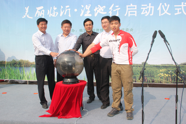 朱傳博經(jīng)理代表公司和與會(huì)領(lǐng)導(dǎo)一起啟動(dòng)水晶球并發(fā)表重要講話。活動(dòng)現(xiàn)場(chǎng),吸引了眾多環(huán)保志愿者和騎行愛(ài)好者的參與,其中,公司的60多名員工和印度專家也參與到活動(dòng)中來(lái),為濕地的保護(hù)貢獻(xiàn)一份自己的力量。