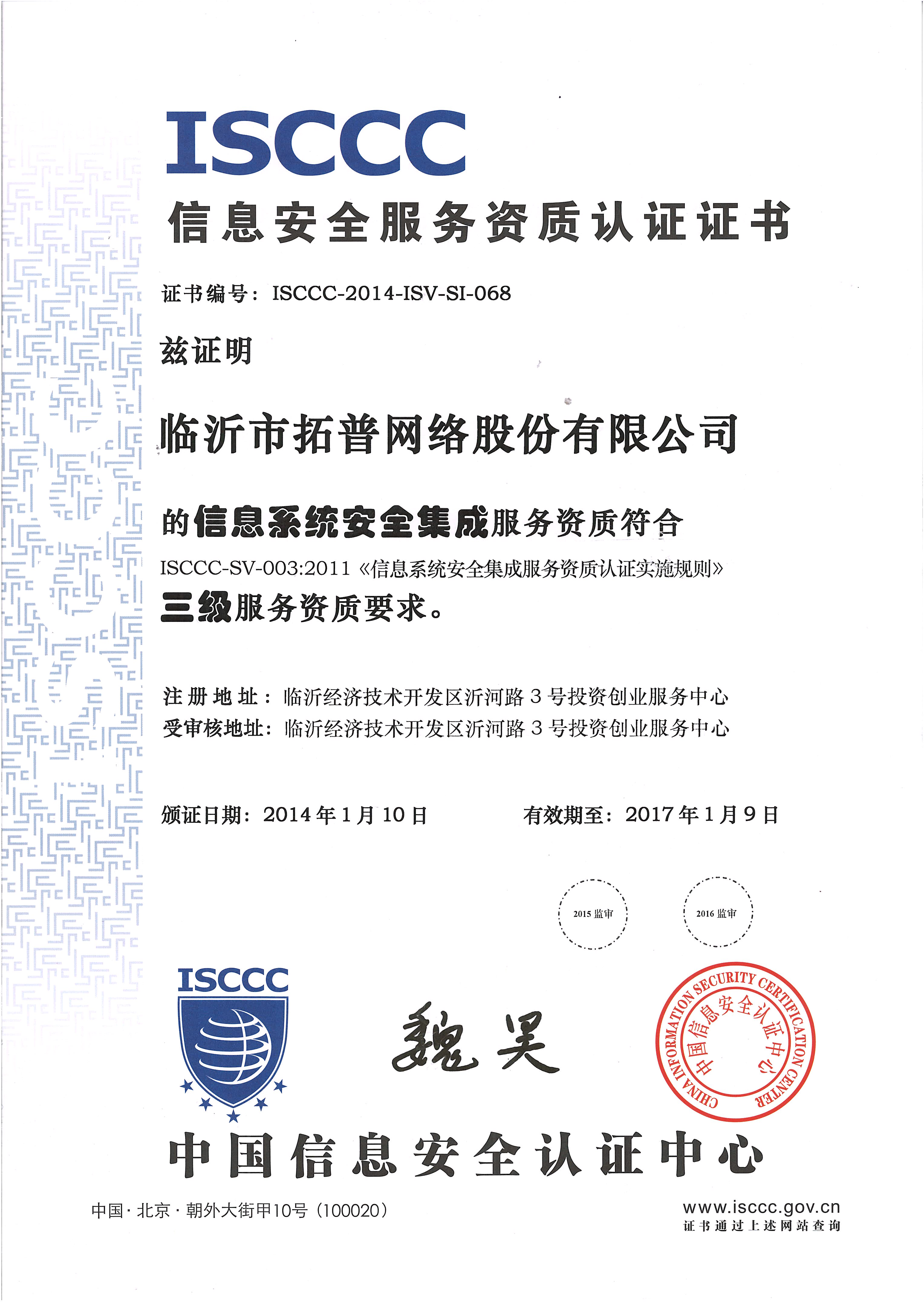 日前,公司的“信息系統(tǒng)安全集成”服務資質系順利通過中國信息安全認證中心多重嚴格測試檢查,正式取得由中國信息安全認證中心頒發(fā)的ISCCC信息安全產品認證證書,成為獲得國家權威機構認證的信息安全審計產品,標志著公司服務資質符合ISCCC-SV-003:2011《信息系統(tǒng)安全集成服務資質認證實施規(guī)則》三級服務資質要求。 公司將以此為契機,將繼續(xù)保持優(yōu)良的傳統(tǒng),并向著更高的要求挑戰(zhàn),追求創(chuàng)新,不斷完善,為所有廣大客戶提供更優(yōu)質的產品。