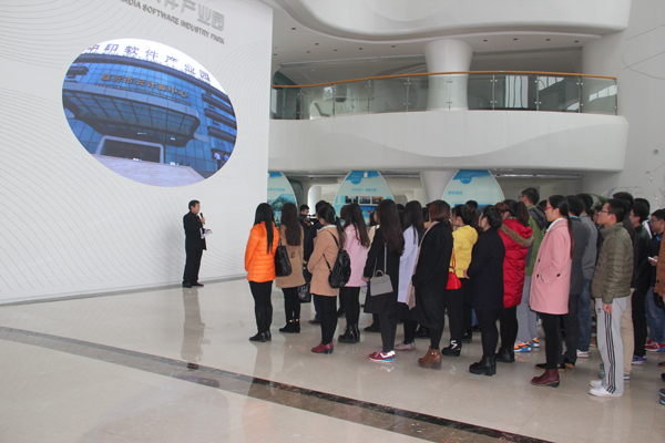 學(xué)生參觀中印軟件產(chǎn)業(yè)園展廳 招聘會(huì)開(kāi)始前,與會(huì)的學(xué)生參觀了中印軟件產(chǎn)業(yè)園,會(huì)后,學(xué)生在中印軟件產(chǎn)業(yè)園餐廳享受了豐盛的午餐。 |