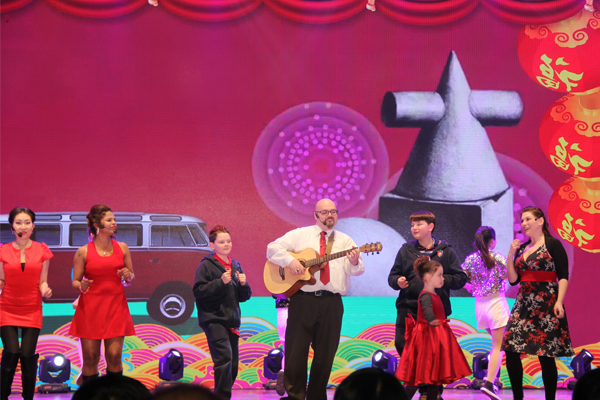 公司外籍專家卡帕娜、愛(ài)麗絲和臨沂外國(guó)語(yǔ)學(xué)校表演《十三五之歌》