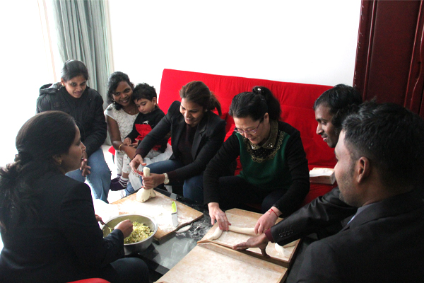 臨近中國農(nóng)歷新年,公司許多印度員工選擇留在中國,感受農(nóng)歷年俗的歡樂氣氛。為了讓他們感受不一樣的新年,為了讓公司這些遠離家鄉(xiāng)的印度員工也來感受中國人最傳統(tǒng)、最隆重的新春佳節(jié),公司安排他們的家人也來到了中國,了解中國傳統(tǒng)文化,體驗中國古老節(jié)日的喜慶氣氛,讓春節(jié)真正團圓,公司中國員工還特地邀請他們一起,包餃子、寫春聯(lián),準(zhǔn)備熱熱鬧鬧過大年。