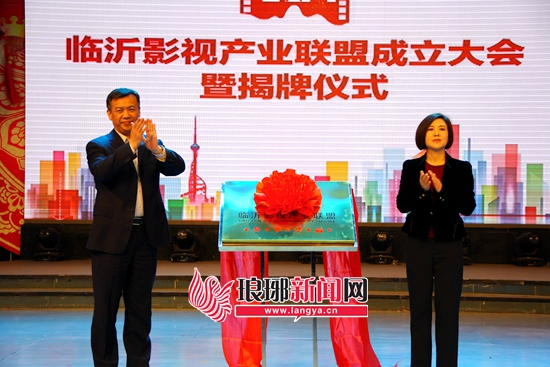 臨沂市委常委、宣傳部長林國華(右一),山東影視傳媒集團副總經(jīng)理牛煙生出席臨沂影視產(chǎn)業(yè)聯(lián)盟成立大會,并為臨沂影視產(chǎn)業(yè)聯(lián)盟揭牌 臨沂影視產(chǎn)業(yè)聯(lián)盟由臨沂市廣播電視臺、市委宣傳部文化體制改革發(fā)展領(lǐng)導小組辦公室共同發(fā)起,聯(lián)合本市的影視制作生產(chǎn)機構(gòu),網(wǎng)絡(luò)視聽機構(gòu),播出機構(gòu)和從事相關(guān)產(chǎn)業(yè)發(fā)展的企事業(yè)單位,按照平等自愿的原則發(fā)起成立的,目的是為了進一步整合臨沂市優(yōu)質(zhì)影視資源,培養(yǎng)優(yōu)秀影視人才,健全和延長產(chǎn)業(yè)發(fā)展鏈條,將臨沂影視產(chǎn)業(yè)整體打造提升為國內(nèi)一流的影視產(chǎn)業(yè)平臺,推動我市文化產(chǎn)業(yè)跨越發(fā)展。臨沂影視產(chǎn)業(yè)聯(lián)盟歷經(jīng)三個月的宣傳發(fā)動及推薦申報,首批共吸納163家影視相關(guān)企業(yè)加入。