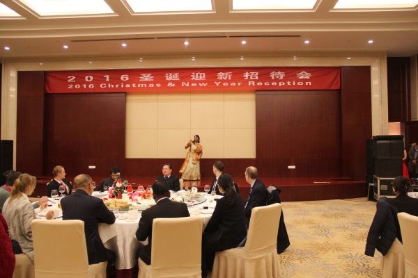 2016年12月23日,臨沂市政府2016年圣誕迎新招待會(huì)在藍(lán)海酒店舉行,公司印度、烏克蘭、俄羅斯等國(guó)的外籍專(zhuān)家受邀參加。 招待會(huì)上,與會(huì)領(lǐng)導(dǎo)與海外高層次人才歡聚一堂,暢敘友情,共謀發(fā)展。公司副總經(jīng)理巴布代表外國(guó)專(zhuān)家講話,印度專(zhuān)家卡帕娜奉獻(xiàn)了精美絕倫的歌舞表演。