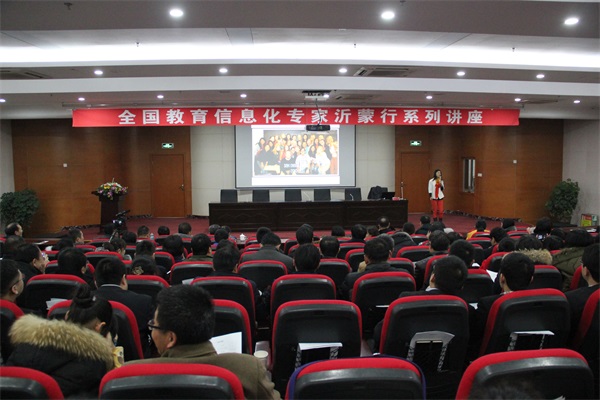 2017年1月5日,臨沂市第三期“全國(guó)教育信息化專家沂蒙行”系列講座在中印軟件產(chǎn)業(yè)園小禮堂成功舉行。本次系列講座特邀美國(guó)圣地亞哥州立大學(xué)教育技術(shù)與傳媒系王敏娟教授作題為“教育技術(shù)現(xiàn)場(chǎng)及其應(yīng)用”、“移動(dòng)學(xué)習(xí)設(shè)計(jì)和增強(qiáng)現(xiàn)實(shí)制作”的報(bào)告,市教科研中心副主任陳為詞、公司副總經(jīng)理朱傳博等領(lǐng)導(dǎo)出席,來自臨沂市各縣區(qū)共計(jì)400余名校長(zhǎng)及骨干老師參加了本次會(huì)議。