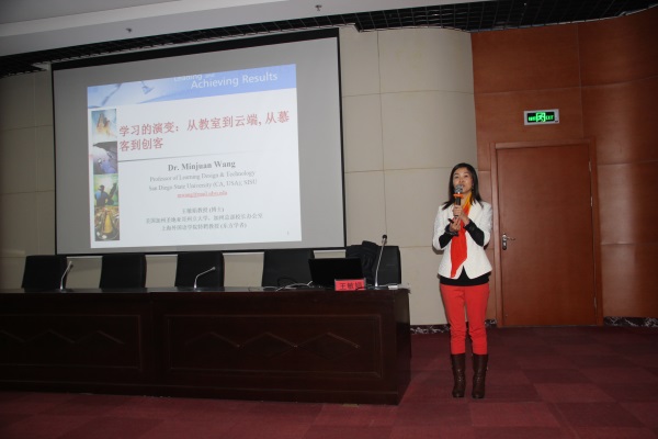 會(huì)議現(xiàn)場(chǎng) 王敏娟教授的報(bào)告,通過“學(xué)習(xí)的演變、參與式學(xué)習(xí)、教學(xué)設(shè)計(jì)模型”等內(nèi)容的精彩講授,全面深刻的闡釋了課堂教學(xué)、電子學(xué)習(xí)、移動(dòng)學(xué)習(xí)、云學(xué)習(xí)等不同教學(xué)技術(shù)帶來的教與學(xué)方式的變革。對(duì)中美教學(xué)差異、美國(guó)教育資源開發(fā)等老師們提出的問題,王教授和老師們做了深刻探討。通過本次講座,提升了與會(huì)教師的信息化教學(xué)能力,推動(dòng)教育信息化與課堂教學(xué)深度融合。 而由公司建設(shè)運(yùn)營(yíng)的臨沂市智慧教育云平臺(tái)正是順應(yīng)時(shí)代發(fā)展要求,在促進(jìn)臨沂市的教育信息化、均衡化發(fā)展具有重要意義。該平臺(tái)是以新一代信息技術(shù)為支撐的綜合教育云應(yīng)用平臺(tái)。通過智慧教育云平臺(tái),實(shí)現(xiàn)了優(yōu)質(zhì)教學(xué)資源共享,聚焦了教學(xué)、學(xué)習(xí)革新范式,形成了體系完整、內(nèi)容海量、模式清晰的智慧教育體系。智慧教育云平臺(tái)在各縣區(qū)推廣后取得了良好的效果,促進(jìn)了教育理念的轉(zhuǎn)變、教育方法的更新、科研能力的增強(qiáng),進(jìn)一步推動(dòng)了教育品質(zhì)的全面提升。 王敏娟教授簡(jiǎn)介: 王敏娟,美國(guó)圣地亞哥州立大學(xué),教育技術(shù)與傳媒系教授、密蘇里大學(xué)信息科學(xué)與教育技術(shù)博士。加州州立大學(xué)總校長(zhǎng)辦公室,大型開放式資源(MERLOT)項(xiàng)目管理人;上海外國(guó)語大學(xué)特聘教授(東方學(xué)者)。王敏娟教授一直開展著前沿的教學(xué)和研發(fā)活動(dòng),從網(wǎng)絡(luò)教學(xué)法,到移動(dòng)學(xué)習(xí),到智慧學(xué)習(xí)和云學(xué)習(xí)的平臺(tái)建構(gòu)。在教育技術(shù)領(lǐng)域的十五年中,她在各類國(guó)際檢索期刊、書籍和國(guó)際會(huì)議上發(fā)表論文80余篇(95%為英語文章)。2011年開始,她被美國(guó)教育界評(píng)為最有影響的作者之一,并被公認(rèn)為移動(dòng)和混合式學(xué)習(xí)領(lǐng)域的專家。曾應(yīng)邀在12個(gè)大型國(guó)際會(huì)議上主題或者嘉賓演講。在過去的6年里,她領(lǐng)導(dǎo)和參加了7個(gè)大型研發(fā)項(xiàng)目。這些項(xiàng)目的資助來自美國(guó)國(guó)家科學(xué)基金會(huì),美國(guó)教育部,中國(guó)教育部和科技部等,總額高達(dá)500萬美金。王敏娟教授也擔(dān)任著4個(gè)檢索期刊的總編,編輯或編委,指導(dǎo)了26名碩士,博士和博士后研究人員。她從教13年,教學(xué)足跡遍布世界各地。她開設(shè)的課程具有前沿性,必要性,實(shí)用性,符合學(xué)生們目前的職業(yè)需求并且預(yù)測(cè)著未來的趨勢(shì)。她出版的兩本暢銷勵(lì)志書籍,影響了世界各地的青年學(xué)子。